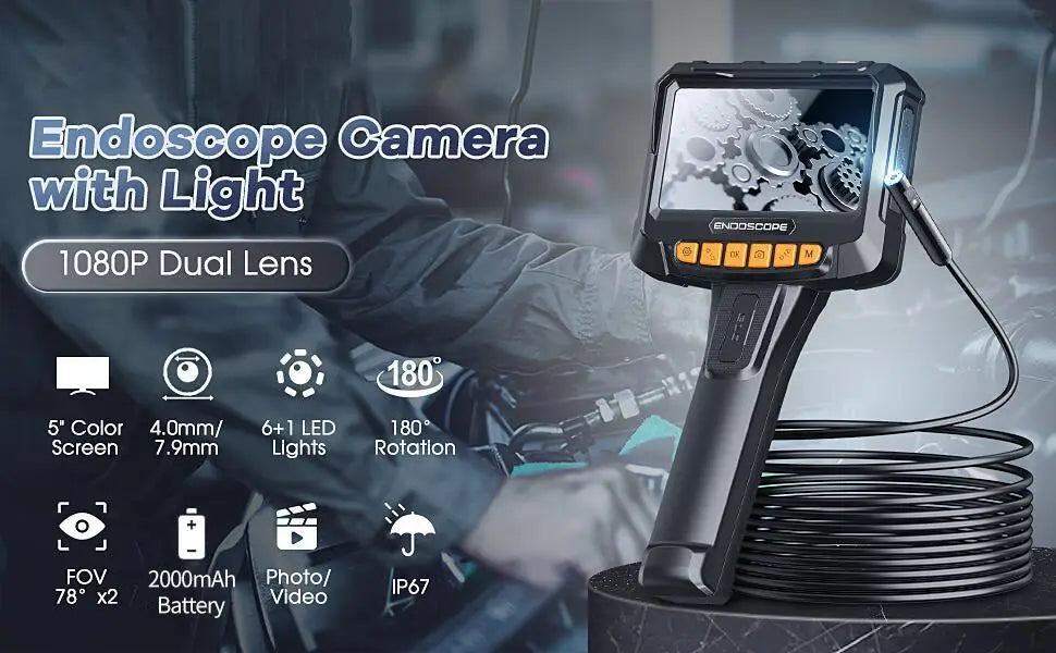 1. 5" IPS Ekran: Borescope, görüntüleri daha net görüntülemek için uygun olan geniş bir 5" IPS ekranı benimser. Fotoğraf, ekran kaydı ve fotoğraf işlevlerini destekler. Kutudan çıktığı anda kullanımı kolaydır. Telefon verilerine, Wifi'ye veya Uygulamalara erişmenize gerek yok.
